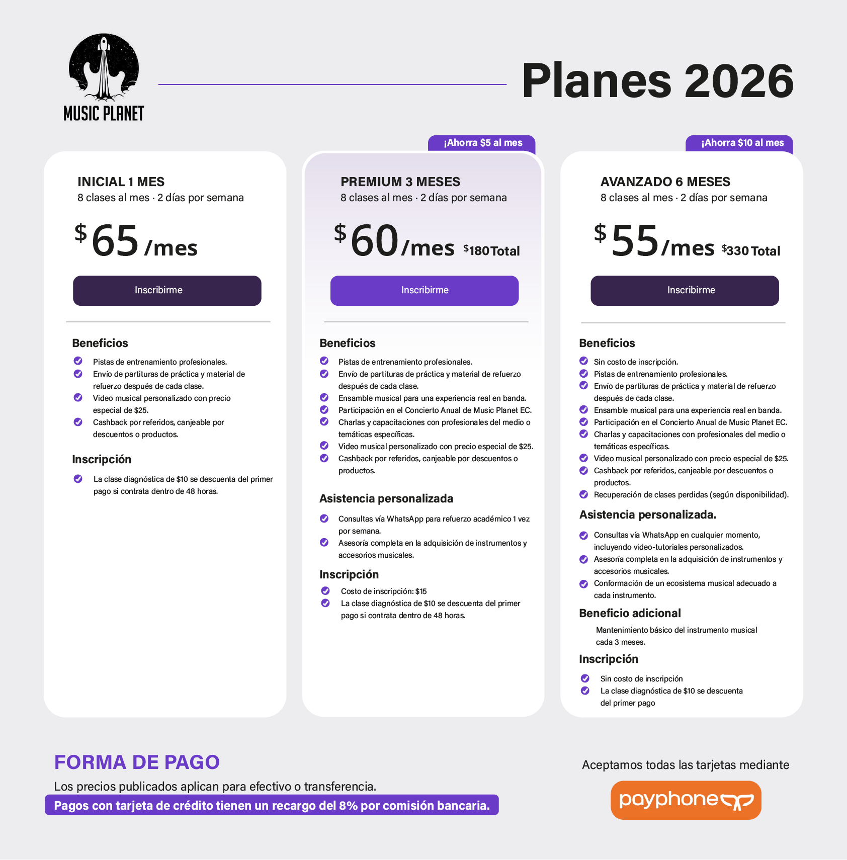 Mis clases de Bajo en Music Planet han sido asombrosas. Los profesores son expertos y amables. Mi habilidad mejoró notablemente. ¡Gracias Music Planet!